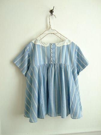 color ブルー、オフホワイト、素材 cotton100%、(別布 cotton100%)、made in China、size F、着丈57cm、バスト102cm、袖丈16cm、肩幅38cm、※スワトウ刺繍ハンカチをリメイクしましたネックレス付きです。
