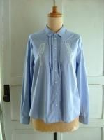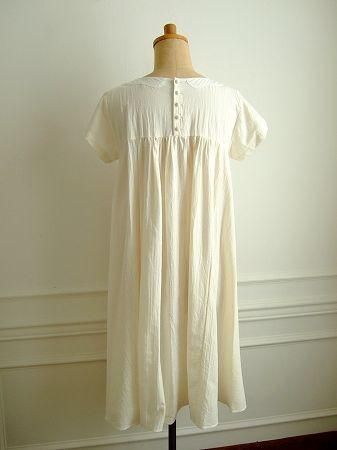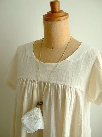 color アイボリー、オフホワイト、素材 cotton100%、(別布 cotton100%)、made in China、size F、着丈100cm、バスト98cm、袖丈12cm、肩幅38cm、※スワトウ刺繍ハンカチをリメイクしましたネックレス付きです。