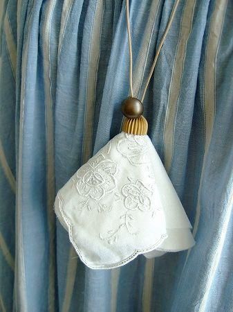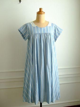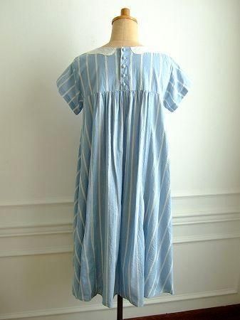 color ブルー、オフホワイト、素材 cotton100%、(別布 cotton100%)、made in China、size F、着丈100cm、バスト98cm、袖丈12cm、肩幅38cm、※スワトウ刺繍ハンカチをリメイクしましたネックレス付きです。