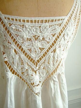 color オフホワイト、素材 Linen100%、(バテンレース部分 cotton100%)、made in China、size F、着丈66cm、バスト102cm、肩幅38cm、※前後どちらを前にしても着用頂けます。