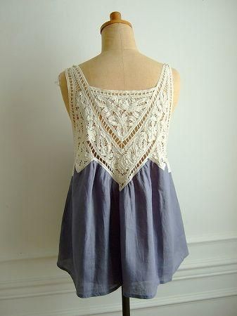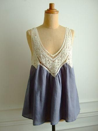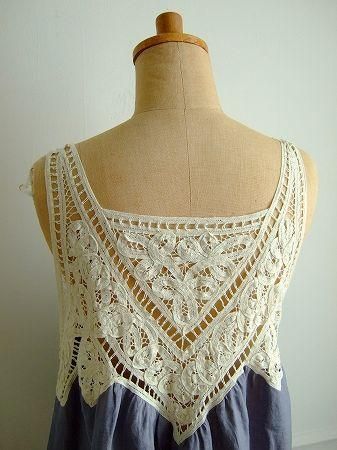 color アンティークブルー、(ラベンダーに近いお色です)、アイボリー、素材 Linen100%、(バテンレース部分 cotton100%)、made in China、size F、着丈66cm、バスト102cm、肩幅38cm、※前後どちらを前にしても着用頂けます。