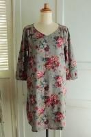 color ナチュラル、アイボリー、素材 Linen100%、(バテンレース部分 cotton100%)、made in China、size F、着丈100cm、バスト105cm、袖丈39cm、肩幅38cm、※フロント部分のバテンレース下より隠しボタンになっており、前開きのデザインのワンピースとなります。
