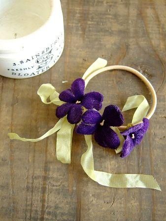 color パープル、グリーン、素材 コットン、made in JAPAN、size (フラワー(3つ)部分7cm)、※リボン加工につきまして・・・こちらに使われているレース・リボンはアンティークな風合いを出す為に紅茶や植物などで染色し、あえて色にムラが出来るように加工してあります。予めご了承下さいませ。