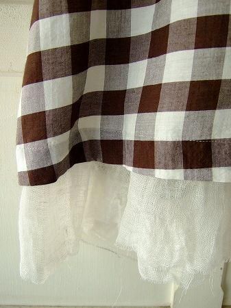 color ブラウン、オフホワイト、素材 モダール52%、コットン31%、リネン17%、(インナー コットン100%/インナー別布 リネン100%)、made in Japan、size F、(ギンガムチェックブラウスのサイズ) 着丈62cm、バスト98cm、肩幅38cm、※取り外しが出来るインナーキャミソール付きです。肩ひもで長さ調節可。