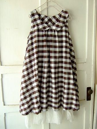 color ブラウン、オフホワイト、素材 モダール52%、コットン31%、リネン17%、(インナー コットン100%/インナー別布 リネン100%)、made in Japan、size F、(ギンガムチェックワンピースのサイズ) 着丈88cm、バスト98cm、肩幅38cm、※取り外しが出来るインナーキャミソール付きです。肩ひもで長さ調節可。