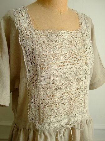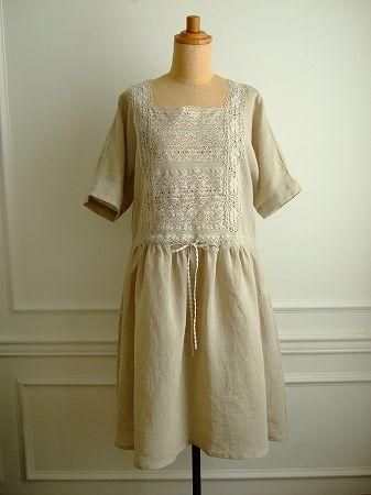 color ナチュラル、素材 Linen100%、(トーションレース レーヨン70%、リネン30%)、made in Japan、size F、着丈101m、バスト100cm、袖丈28cm、肩幅38cm、※裏地は付いておりません。