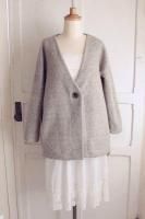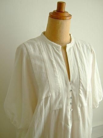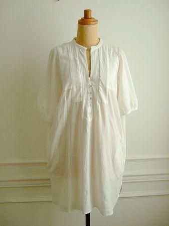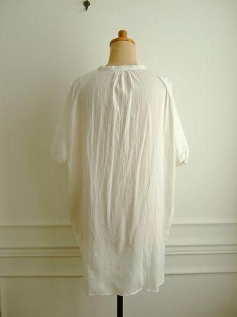 color オフホワイト、素材 cotton100%、made in CHINA 、size F、着丈86cm、バスト122cm、袖丈36cm、肩幅38cm、※裏地は付いておりません。