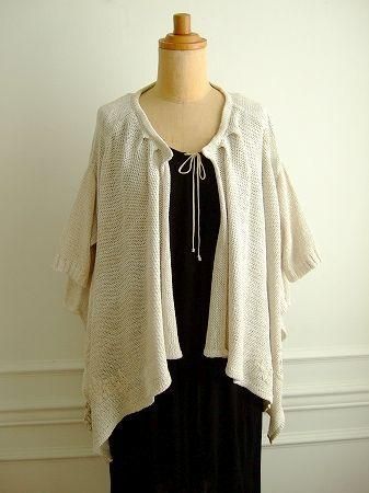 color アイボリー×ベージュ(ミックス)、(背中部分にゴールドの糸が織り込まれています)、素材 cotton94%、ポリエステル6%、 made in China、size 2、着丈63〜85cm(サイドの丈が長めとなっております)、バスト フリー、袖丈35cm(切替しより22cm)、肩幅38cm、