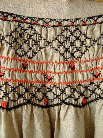 color ナチュラル、(刺繍糸 ブラック、レッド)、素材 Linen100%、size F、着丈62m、ウエスト68cm、ヒップ120cm、※裏地は付いておりません。前後 どちらを前にしても着用頂けます。