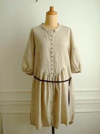 color ナチュラル、素材 Linen100%、made in China、size 着丈105cm(フロント90cm)、バスト112cm、袖丈38cm、肩幅38cm、※裏地は付いておりません。