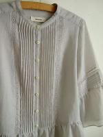 color アイボリー、オフホワイト、素材 cotton100%、made in Japan、size F、着丈58cm、バスト102cm、袖丈37cm、肩幅38cm、※ベストは取り外し 可能です。