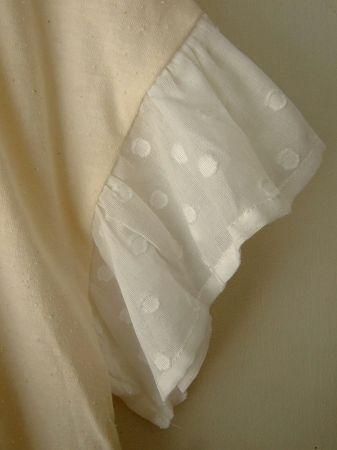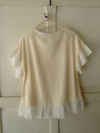 color アイボリー、オフホワイト、素材 cotton100%、(別布cotton100%)、made in Japan、size F、着丈60cm、バスト92cm、袖丈19cm、肩幅38cm、※レース襟は取り外し可能です。