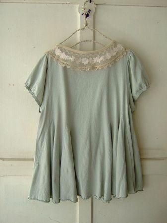 color ミントブルー、ベージュ、素材 cotton100%、、made in Japan、size F、着丈62cm、バスト94cm、袖丈16cm、肩幅38cm、※レース襟は取り外し可能です。