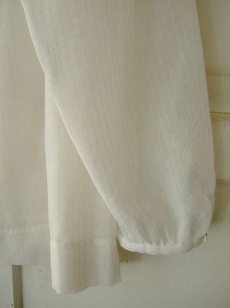 color オフホワイト、素材 ポリエステル50%、コットン27%、ウール18%、キュプラ55、made in China、size 38、着丈65cm、バスト130cm、袖丈58cm、肩幅38cm、※裏地は付いておりません。