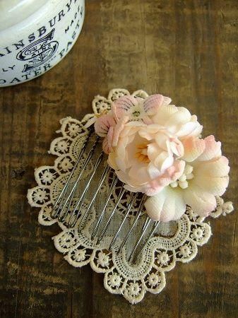 color ピンク、オフホワイト、素材 コットン、ナイロン、真鍮、made in JAPAN、size (コーム含む)5×5cm