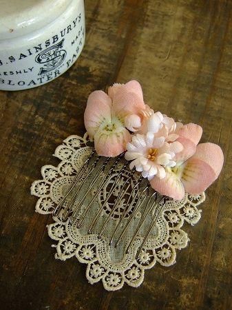 color ピンク、ベビーピンク、素材 コットン、ナイロン、真鍮、made in JAPAN、size (コーム含む)6×6cm