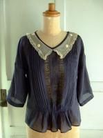 nesessaireハンドドロンワーク刺繍セレモニーブラウスBK