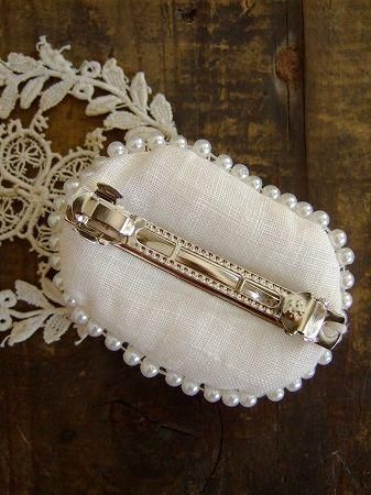 color オフホワイト、レッド、パープル、イエロー、素材 コットン、made in JAPAN、size モチーフ 直径5×6.5cm、※中に綿が入り、ふちにはパールビーズが施されています。