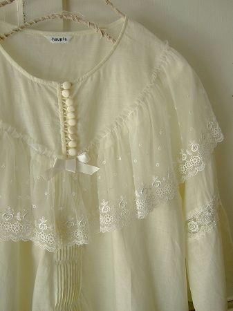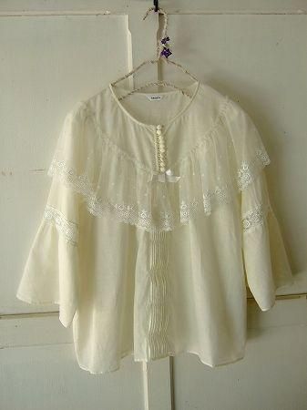 color アイボリー、オフホワイト、素材 コットン51%、リヨセル49%、(レース部分 ナイロン100%、刺繍糸 ポリエステル100%)、made in China、size 38、着丈55cm、バスト105cm、袖丈38cm、肩幅38cm、※裏地は付いておりません。