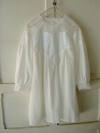 color オフホワイト、素材 cotton100%、(レース部分 cotton100%)、made in japan、size F、着丈74cm、バスト110cm、袖丈44cm、肩幅38cm、※裏地は付いておりません。
