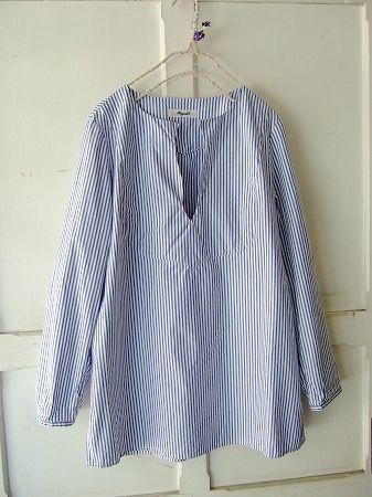 color ブルー×オフホワイト、素材 cotton100%、made in Japan、size 2、着丈69cm、バスト100cm、袖丈58cm、肩幅38cm