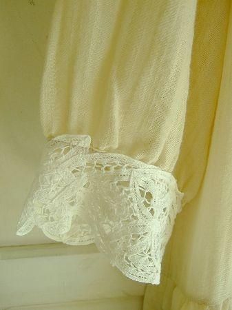 color アイボリー、オフホワイト、素材 wool54%、cotton46%、(レース部分 cotton100% / 裏地ポリエステル100%)、made in China 、size 着丈102cm、バスト93cm、袖丈36cm、肩幅38cm、※背中にファスナーが付いています。