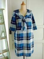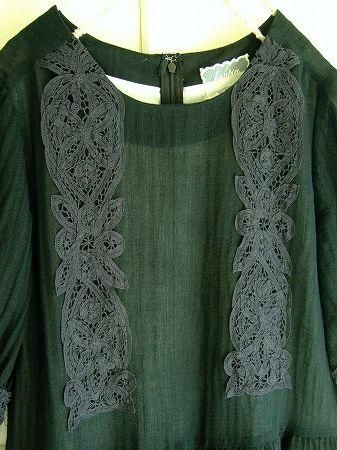 color ネイビー、素材 wool54%、cotton46%、(レース部分 cotton100% / 裏地ポリエステル100%)、made in China 、size 着丈102cm、バスト93cm、袖丈36cm、肩幅38cm、※背中にファスナーが付いています。