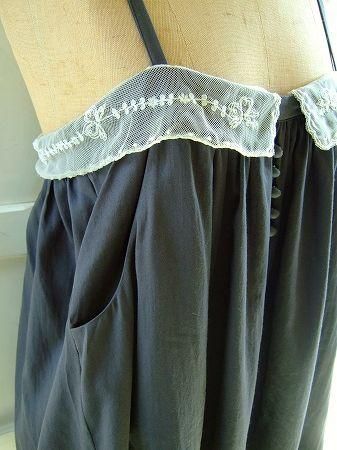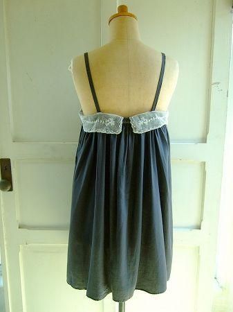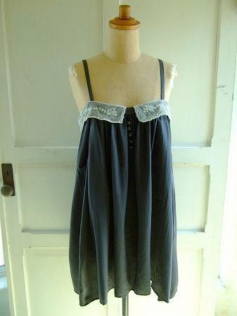color ダークグレー、アイボリー、素材 cotton100%、(レース部分)ナイロン100%、made in Japan、size F、着丈82m、バスト88cm、肩幅38cm、※裏地は付いておりません。チュールレース襟部分はスナップボタンで留まっております為、取り外し可能です。