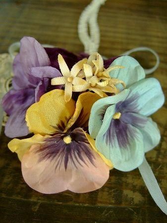 color ブルー、パープル、イエロー、オレンジ、素材 コットン、シルク、made in JAPAN、size (コサージュ部分全長)9cm、(ひも含む全長)19cm