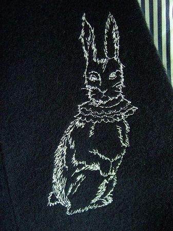 color ネイビー、(刺繍糸 オフホワイト)、素材 ウール90%、ナイロン10%、(裏地 コットン100%)、made in China 、size 38、着丈46cm、バスト86cm、肩幅38cm