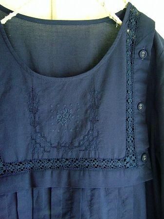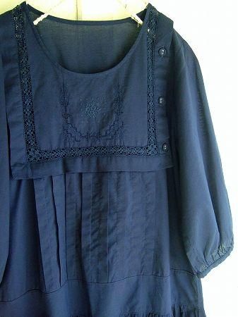 color ネイビー、素材 cotton100%、made in China、size F、着丈100cm、バスト92cm、袖丈39cm、肩幅38cm、※裏地は付いておりません。