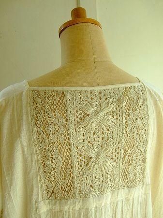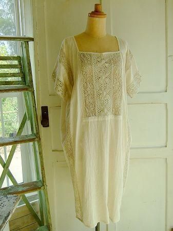 color アイボリー、ナチュラル、素材 cotton70%、Linen30%、(トーションレース wool80%、Linen20%)、made in Japan、size F、着丈97cm、バスト130cm、袖丈22cm、肩幅38cm、※裏地は付いておりません。