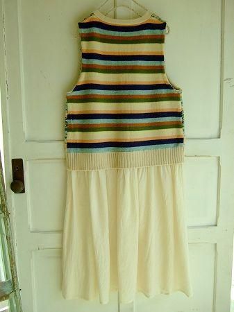 color アイボリー、ブルー、グリーン、ピンク、イエロー、オレンジ、素材 wool100%、(ボトム)cotton100%、made in China、size F 、着丈107cm、バスト94cm、肩幅38cm、※裏地は付いておりません。ボトム部分は隠しボタンが付いており前開きデザインとなっております。