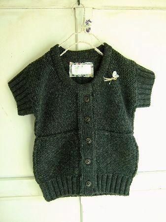 color チャコール、素材 wool100% 、made in Japan、size 38、着丈54cm、バスト80cm、袖丈11cm、肩幅38cm、※プチフラワーのブローチ付きです。