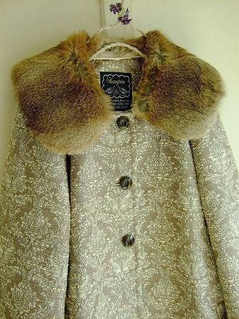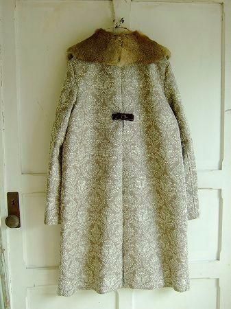 color グレージュ、オフホワイト、シルバー、ナチュラルブラウン、素材 コットン47%、ポリエステル31%、ウール11%、テンセル11%、(別布部分 レーヨン77%、シルク23%、裏地 ポリエステル100%、襟 ラビットファー)、made in China 、size 38、着丈90cm、バスト97cm、袖丈57cm、肩幅38cm、※ファー部分は取り外しが可能です。