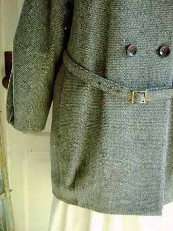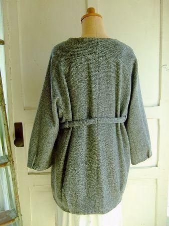 color グレー、(オフの糸をミックスして織り上げています)、素材 ウール80%、ナイロン8%、ポリエステル8%。アクリル4%、(裏地 コットン100%、袖裏 ポリエステル100%)、made in Japan、size 着丈74cm、バスト104cm、袖丈50cm、肩幅39cm