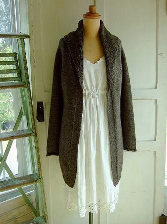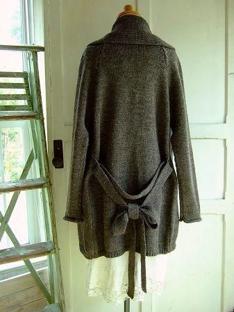 color チャコール、素材 wool100%、made in England、size 着丈85cm、バスト フリー、袖丈63cm、肩幅38cm、※同素材のリボンベルト付きです。