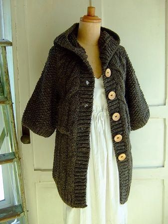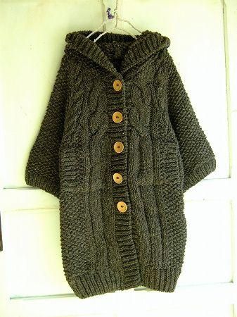 再入荷!【made in Peru】ケーブル編みフードロングカーディガンCC