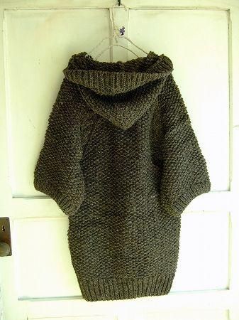 color チャコール、素材 wool100%、made in PERU 、size 38、着丈72cm、バスト80cm、袖丈40cm、肩幅38cm 、※1点1点ハンドメイドの為、多少の誤差が生じる場合がございます。予めご了承くださいませ。
