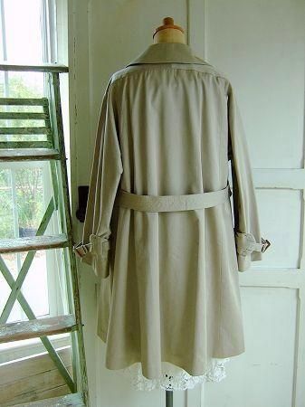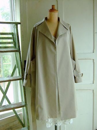 color ベージュ、素材 cotton100%、(裏地 cottn75%、Linen25%)、made in Japan、size 2、着丈93cm、バスト フリー、袖丈56cm(切替しより52cm)、肩幅39cm、※フロント部分にボタンは付いておりません。