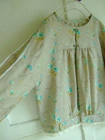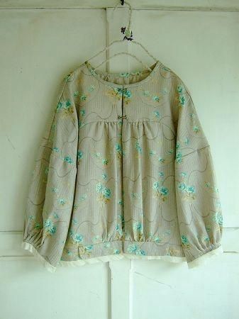 color グレー、ブルー、アイボリー、素材 wool100%、(別布 cotton100%)、made in Japan、size F、着丈49cm、バスト103cm、袖丈46cm(切替しより28cm)、肩幅38cm、※フロント部分に鍵ホックが2つ付いています。