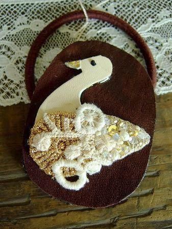 color オフホワイト、ブラウン、ゴールド、シルバー、素材 コットン、合皮、アクリル、made in JAPAN、size (モチーフ)7×5cm、※接着剤が見える箇所がございます。予めご了承下さいませ。