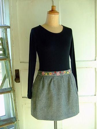 color グレー×オフホワイト(ミックス)、(刺繍 ピンク、グリーン、レッド、イエロー)、素材 ウール80%、ポリエステル8%、ナイロン8%、アンゴラ4%、(裏地 ポリエステル100%)、made in China 、size 38、着丈38cm、ウエスト70cm、ヒップ100cm