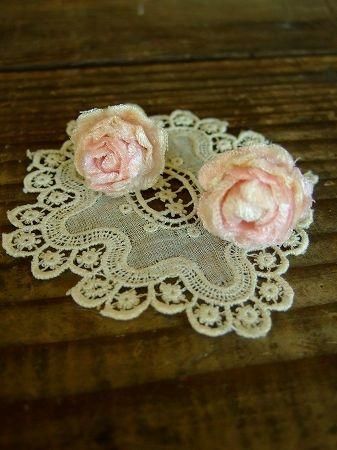 color ピンク、グリーン、金古美、素材 コットン、真鍮、made in JAPAN、size (ローズ)直径2cm