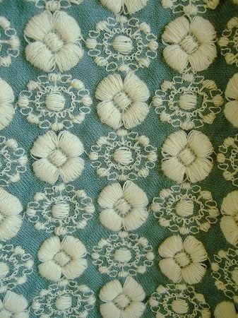 color ミント、オフホワイト、素材 Linen100%、(裏地ポリエステル100%、別布 cotton100%、刺繍糸(表)wool100%、刺繍糸(裏)ポリエステル100%)、made in Japan、size F、着丈84cm、バスト92cm、袖丈40cm、肩幅38cm