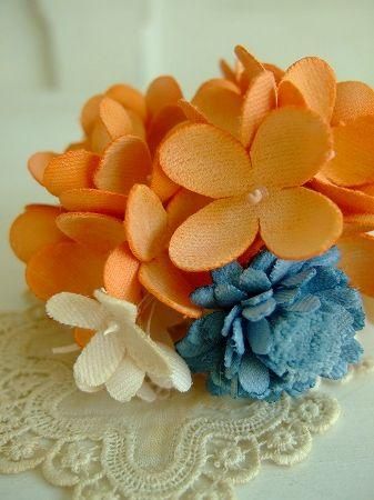 color ブルー、オレンジ、オフホワイト、素材 コットン、made in JAPAN、size (フラワー)直径7.5cm