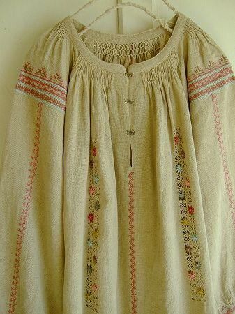 color ナチュラル、(刺繍 ブルー、ピンク、レッド、オリーブ、ブラウン、グレー)、素材 リネン55%、レーヨン45%、made in China、size F、着丈75cm、バスト140cm、袖丈48cm、肩幅38cm