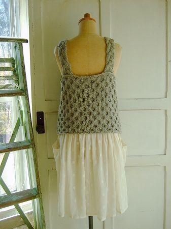 color グレー、アイボリー、素材 wool100%、(スカート)cotton100%、made in China、size F、(トップ)着丈55cm、バスト94cm、肩幅38cm、(ボトム)着丈54cm、ウエスト70cm(ゴムが入っております)、※裏地は付いておりません。トップとボトムはつながっておらずセパレートになっています。