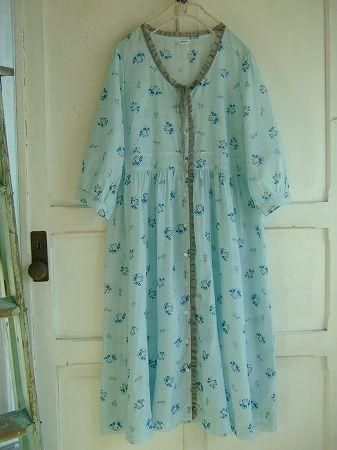 color ライトブルー、ブルー、グレー、グリーン、素材 キュプラ55%、コットン45%、(別布)テンセル100%、(フリル部分)シルク100%、made in China 、size 38、着丈104cm、バスト92cm、袖丈42cm、肩幅38cm、※裏地は付いておりません。