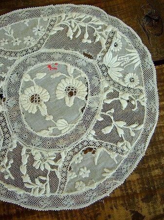 color アイボリー、素材 コットン、size 直径18cm、年代不明、買い付け国 イギリス、コンディション△、ほつれあり。※アンティークの為、多少の汚れやほつれなどは予めご了承下さいませ。